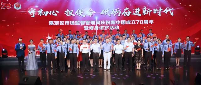 为庆祝新中国成立70周年、嘉定区市场监管局成立4周年,同时也为我局“不忘初心、牢记使命”主题教育拉开序幕,9月16日,我局在保利大剧院举行庆祝新中国成立70周年暨修身讲堂活动。嘉定区巡视员周金林,市市场监管局巡视员张准民,区人大常委会副主任王其明,区政协副主席陈宾,区委宣传部副部长、区文明办主任金芳出席活动。太仓市市场监管局党委书记,我局党政班子领导成员、副调研员、各级党组织书记和干部代表共400余人参加活动。